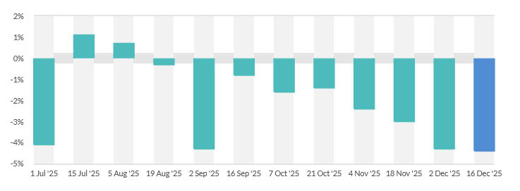 La plataforma Global Dairy Trade realizó la última subasta del 2025, marcando una importante baja en el precio promedio de los lácteos, que se ubicó en los U$S3.341 la tonelada (-4.4%).