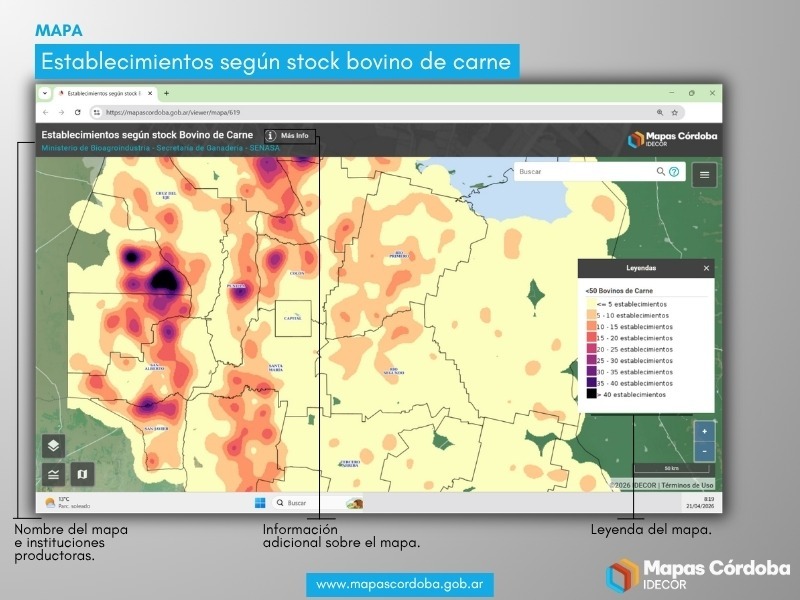 El Ministerio de Bioagroindustria, con el apoyo técnico y la infraestructura de IDECOR, presenta una nueva serie de mapas de calor de establecimientos bovinos, diferenciados por sistemas de producción de carne y leche.