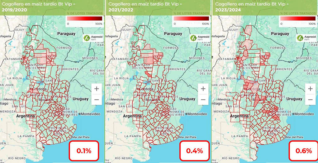 No obstante, los daños detectados esta campaña en híbridos que expresan esta proteína podrían indicar que dicha ventaja comienza a disminuir. Vip3Aa continúa siendo una herramienta fundamental frente a esta plaga, por lo que la aparición de daños en estos materiales constituye una señal de alerta que requiere atención inmediata y acciones coordinadas entre los distintos actores del sector.