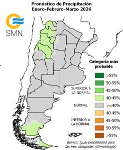 -NOA y Extremo Sur: Estas regiones cuentan con una perspectiva más optimista, con una probabilidad de lluvias superiores a la normal. Esto podría favorecer el desarrollo de las campañas regionales y las pasturas en el sur patagónico.