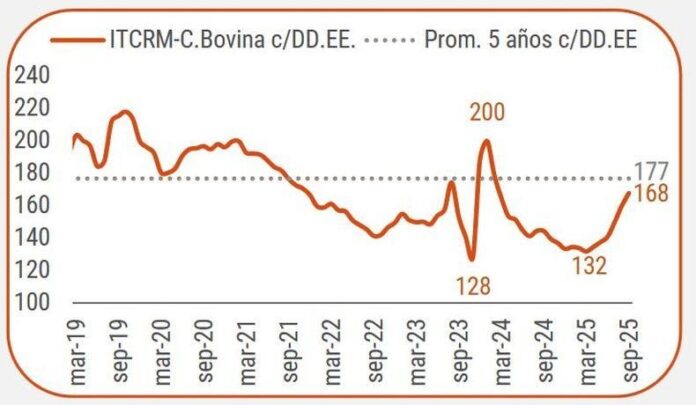 El Índice del Tipo de Cambio Real Multilateral de la carne bovina argentina (ITCRM-Carne) se recuperó de manera importante en los últimos meses, luego de registrar un mínimo de 132 en el primer trimestre de este año.