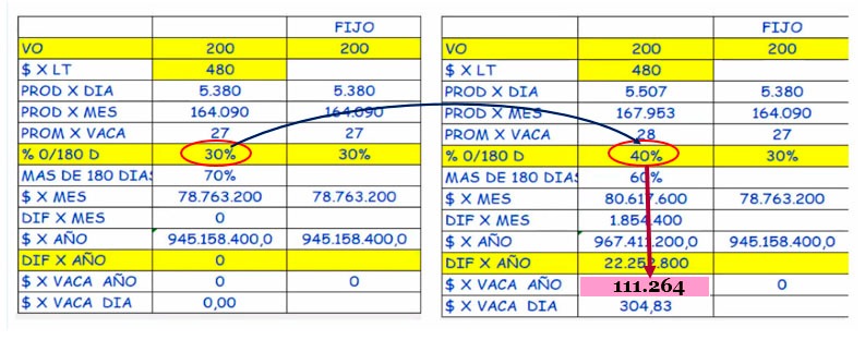 Rodolfo Murray comparte unos registros económicos del manejo que propone y señala que si se puede ampliar de 30 al 40% de un rodeo de 200 vacas a los 180 días propuestos se obtiene un litro de leche/día adicional por vaca. Con ello, se agrega una utilidad extra de $111.264. De allí la importancia de sumar más vacas en la ventana de los 180 días propuestos.