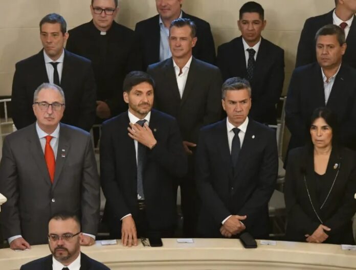 El gobernador de Santa Fe, Maximiliano Pullaro, fue uno de los mandatarios que estuvo presente en la asuncin de Juan Pablo Valds como gobernador de Corrientes, en la ceremonia que se realiz en el recinto del palacio legislativo.