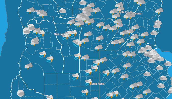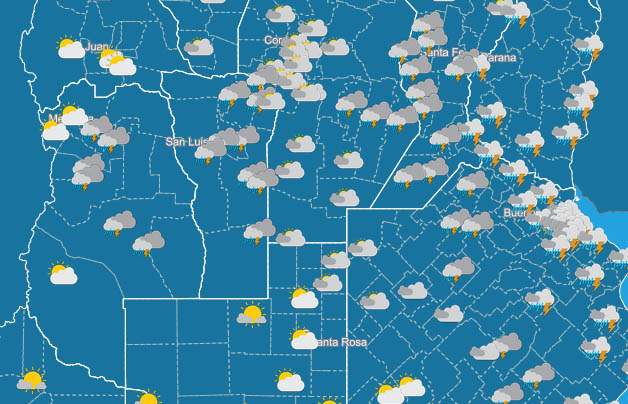 A continuación, el mapa de tormentas y precipitaciones que muestra el Servicio Meteorológico Nacional para este fin de semana: