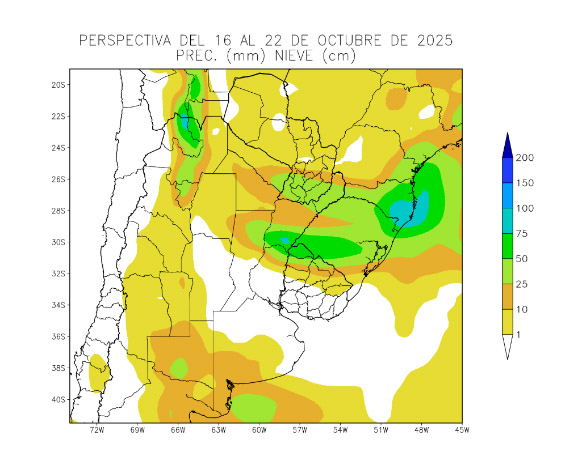 Es así que la mayor parte del área agrícola observarán precipitaciones escasas (menos de 10 mm) a nulas. Solamente, norte del NOA, el sudeste del Paraguay, el norte y centro de la Mesopotamia y zonas aledañas, el norte del Uruguay y el sudoeste de la Región Pampeana observarán precipitaciones moderadas a abundantes (10 a 50 mm), según las proyecciones informadas por la Bolsa de Cereales de Buenos Aires.