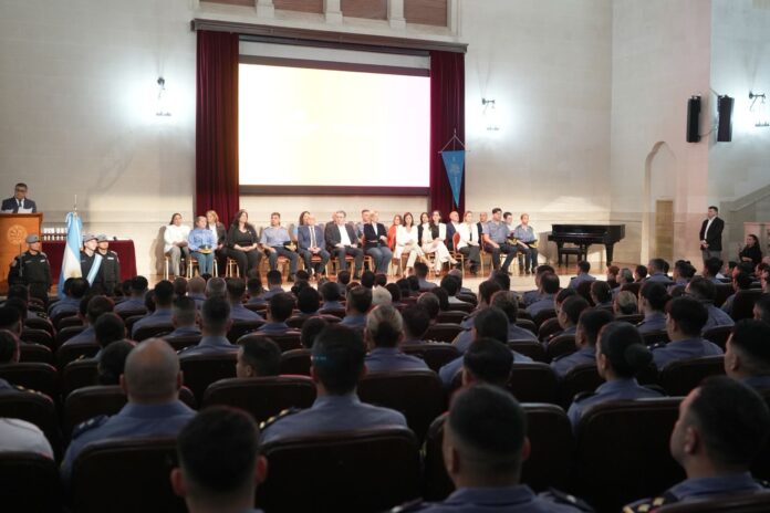 Del acto participaron también la secretaria de Educación, Carolina Piedrabuena, el jefe de Policía de la Provincia, Luis Maldonado; y el subjefe de Policía, Daniel Filchel, junto con demás autoridades provinciales.