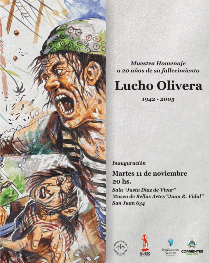El Instituto de Cultura de Corrientes invita a la inauguración de la muestra homenaje al historietista correntino Lucho Olivera, al conmemorarse 20 años de su fallecimiento (1942-2005). Se realizará este martes 11 de noviembre, a las 20, en la sala Justo Díaz de Vivar del Museo de Bellas Artes Juan Ramón Vidal (San Juan 634).