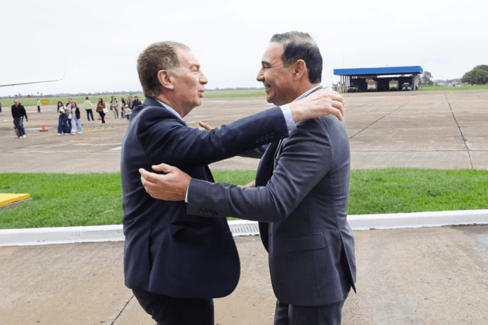 El gobernador Gustavo Valdés recibió, este lunes a la mañana en el aeropuerto de la ciudad de Corrientes, al ministro del Interior de la Nación, Diego Santilli, con quien luego a las 10 brindará una conferencia de prensa que tendrá lugar en el Salón Amarillo de Casa de Gobierno.